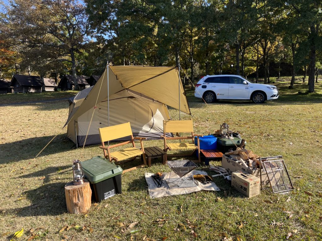 まずはテント、道具を車から下ろして