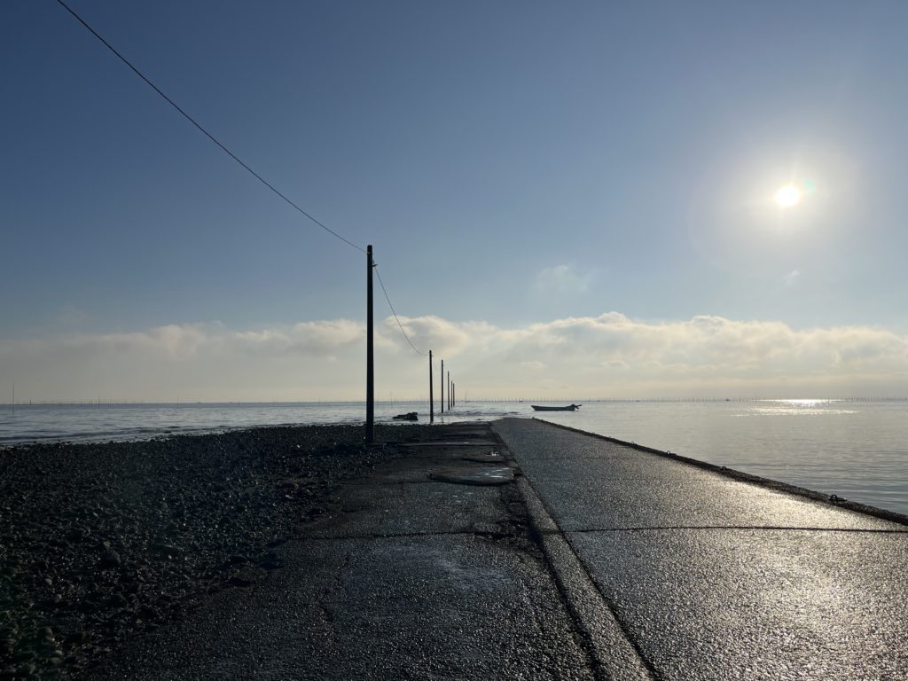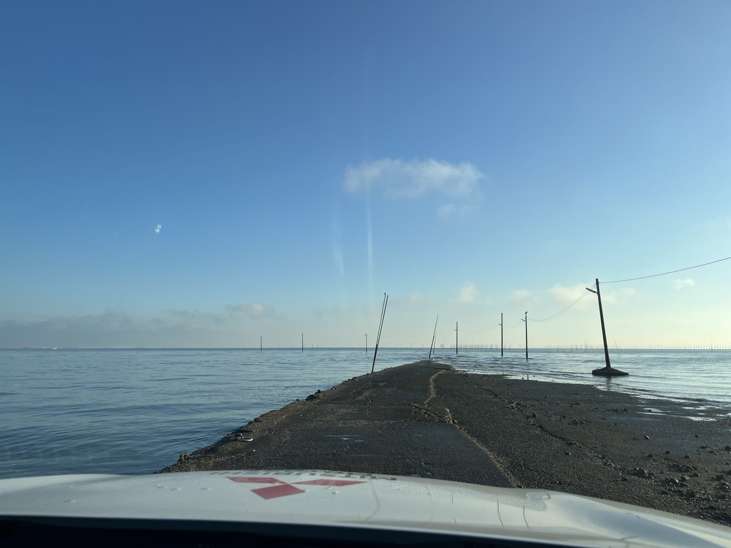 昨日通った諫早湾干拓堤防道路を通り