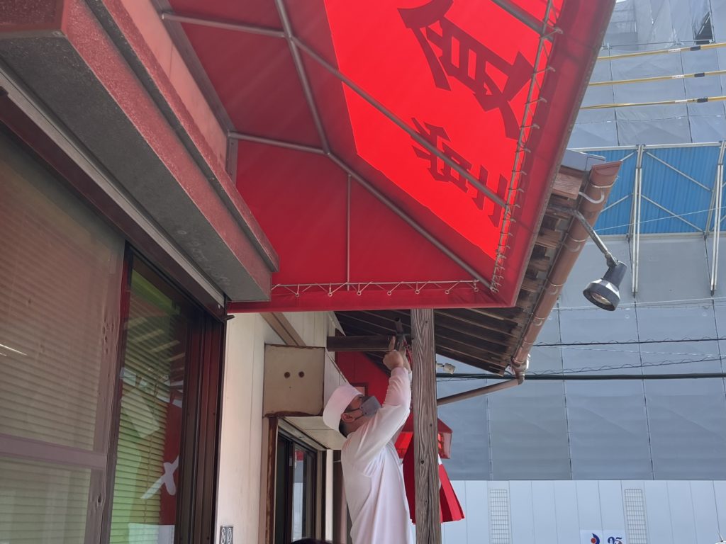 11時過ぎで、安全食堂にのれんがかかり