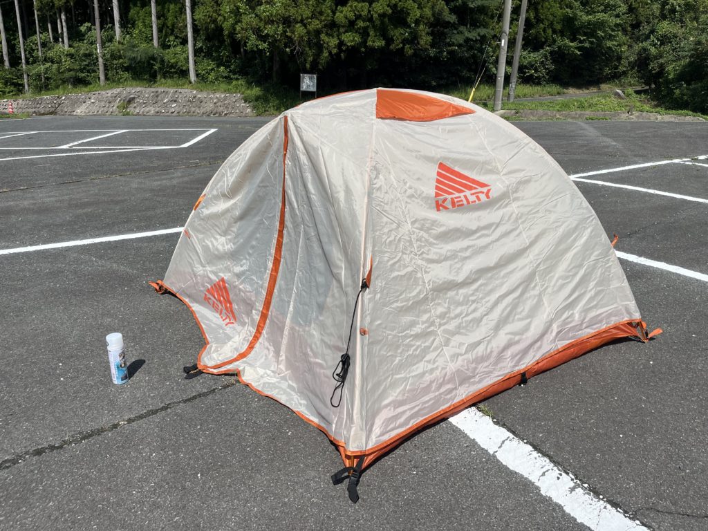 まずはテントを貼り防水スプレーをして