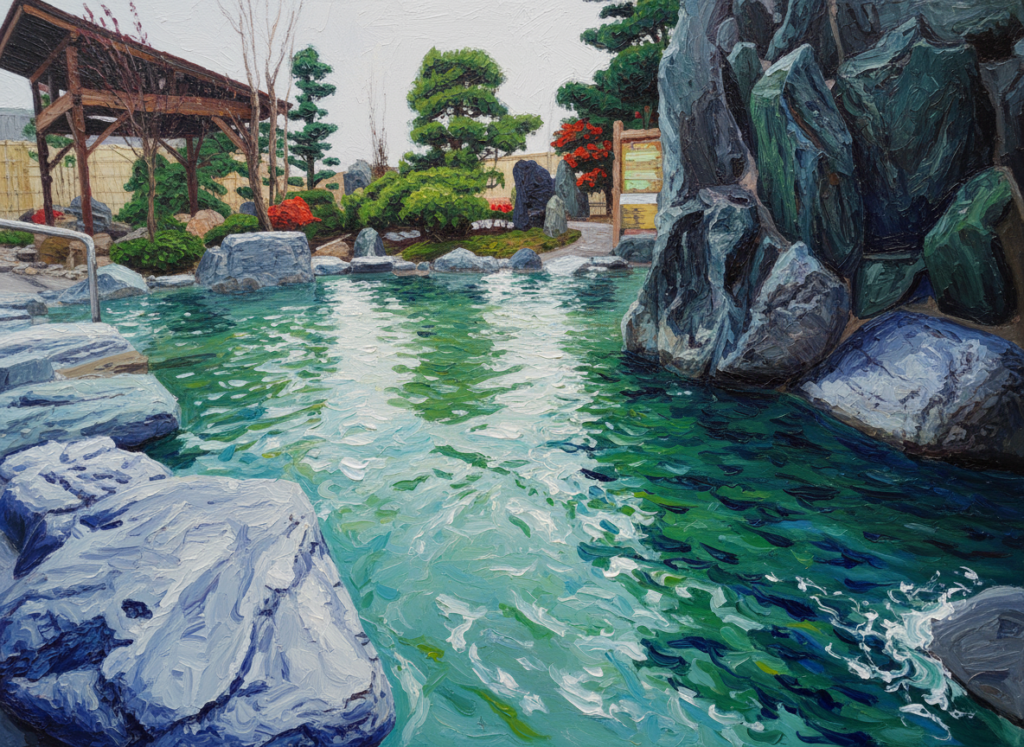 ぬるめの温度の温泉♨️やけど