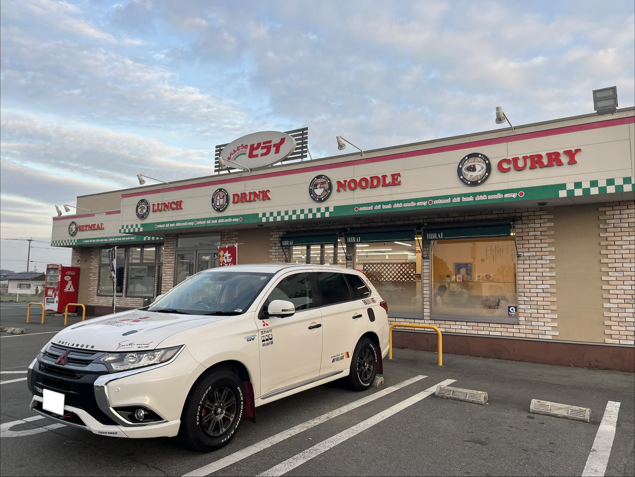 途中朝飯で恒例のおべんとうのヒライに