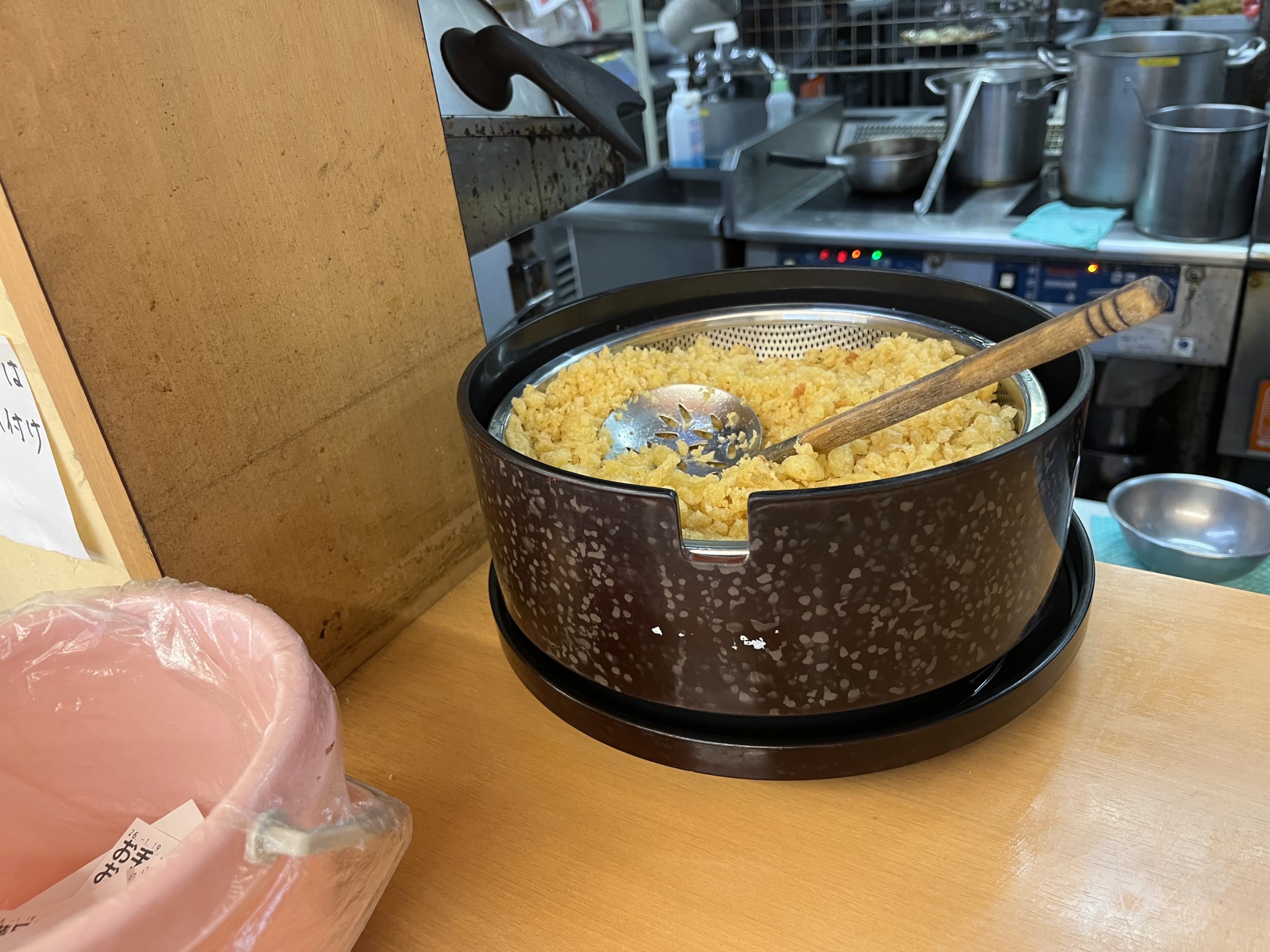 天かすと、柚子胡椒を入れて食うのが