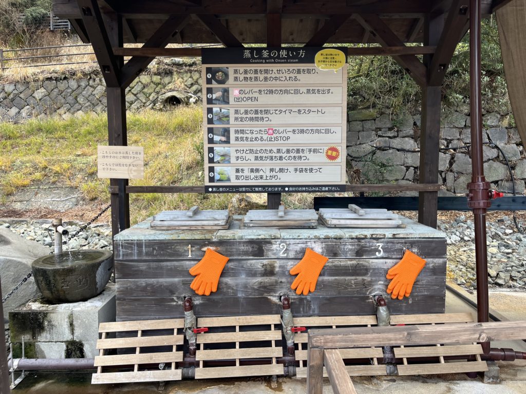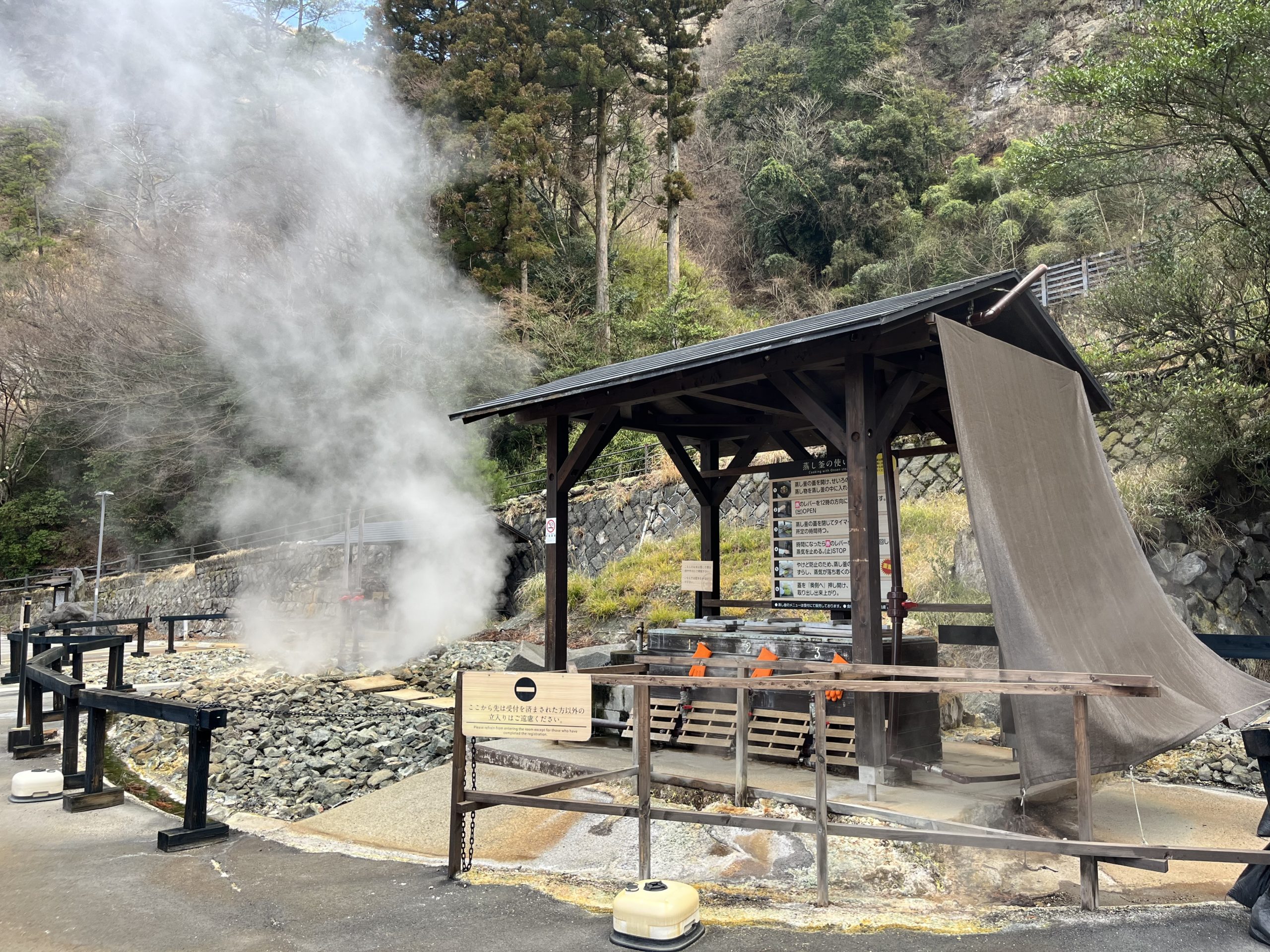 受付前には蒸し場があり