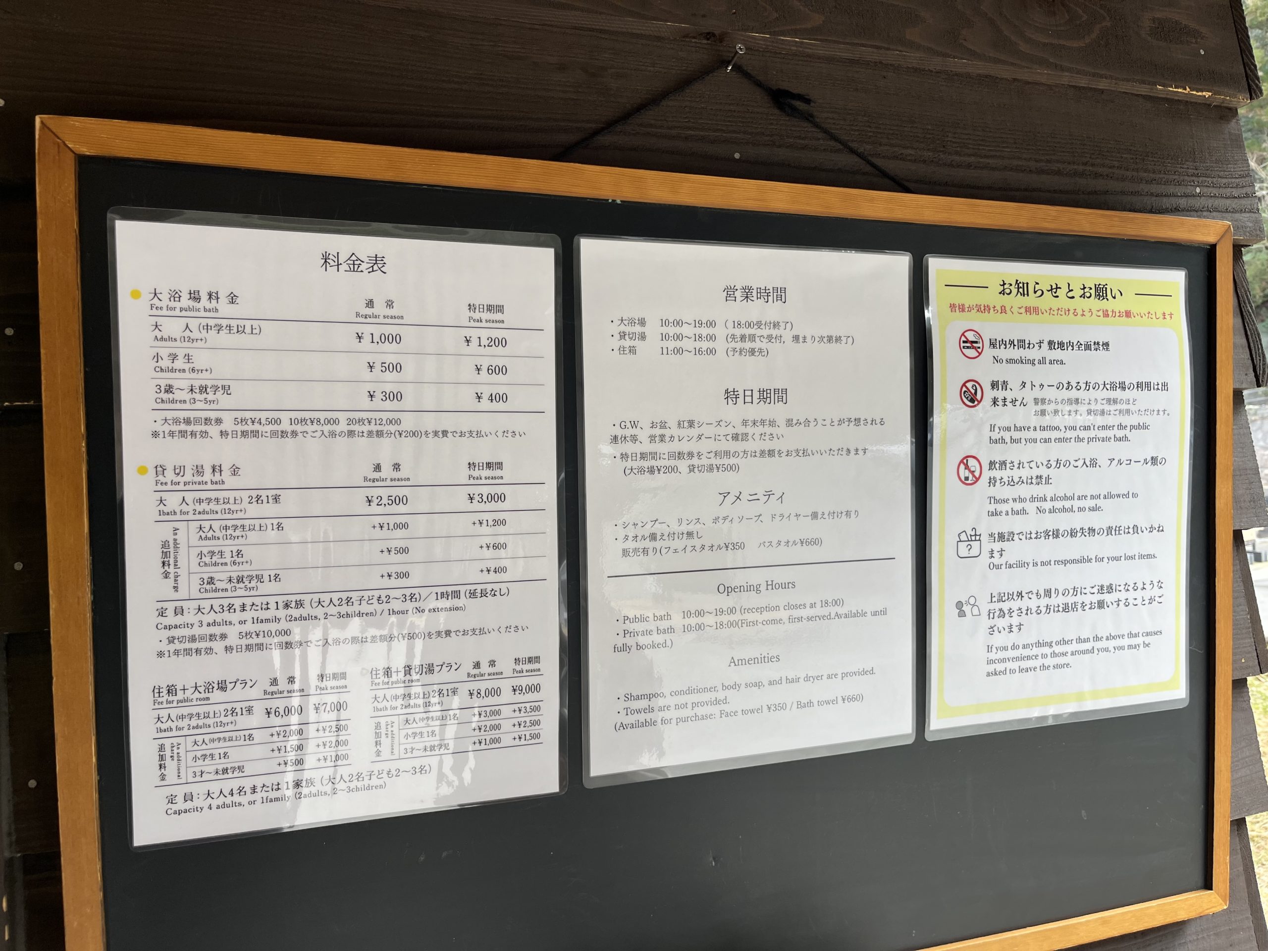 入浴料 ¥1.000円を支払い