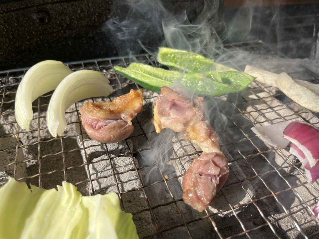 親鶏が到着して、ちょっと焼いてみると