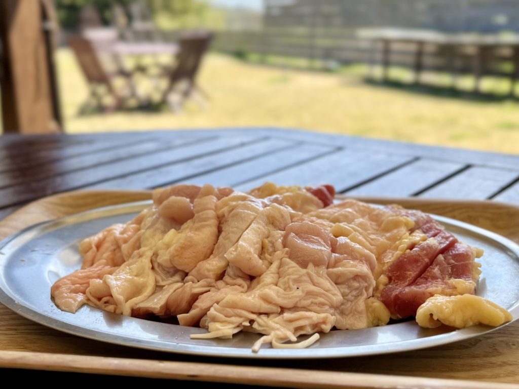 初めの鶏肉は食い終わっとるけん