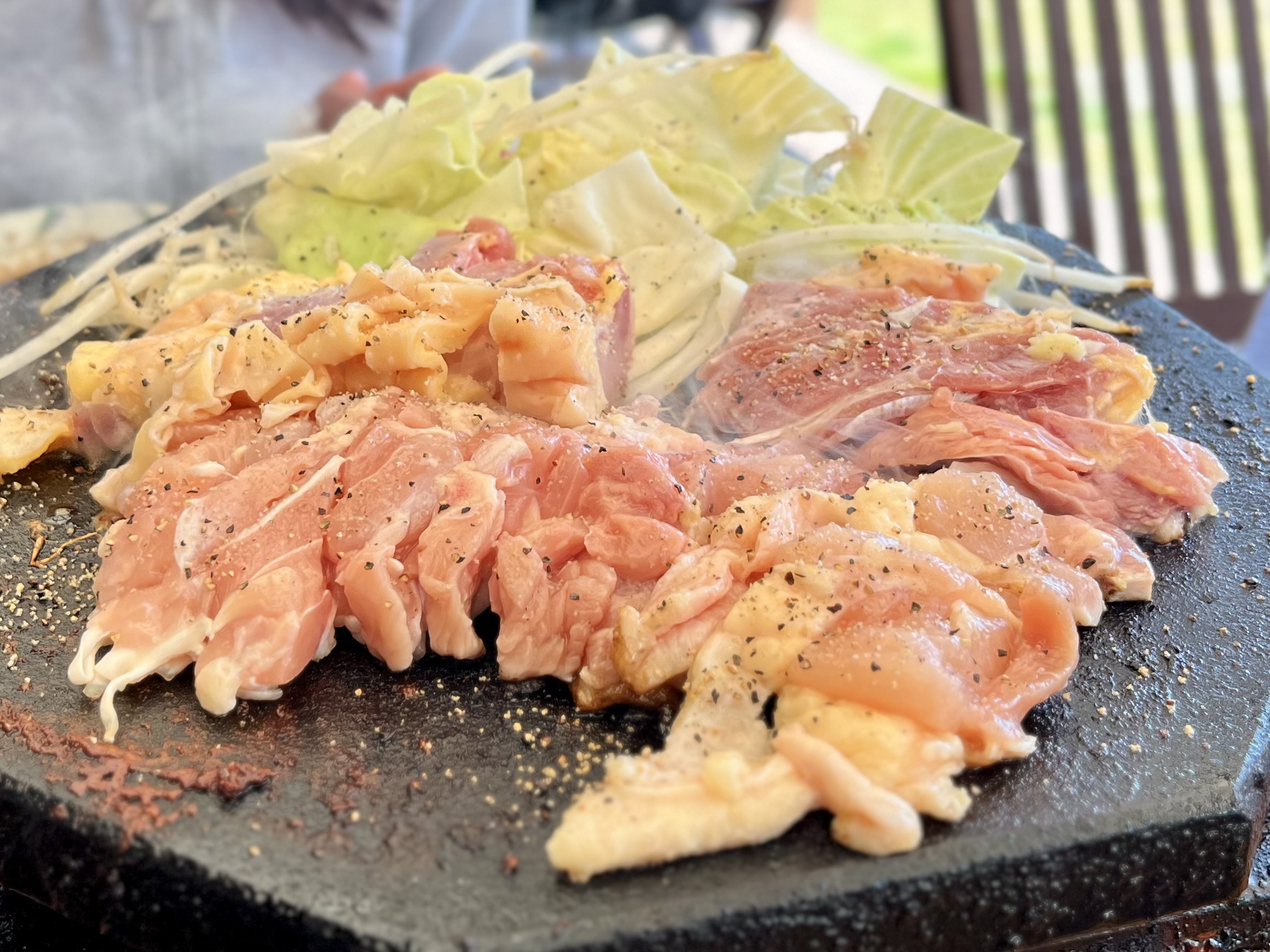 最後のおかわりで野菜も一緒に焼き